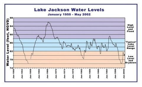 Aerial view over Lake Jackson looking south. US Highway 27 can be seen in the
