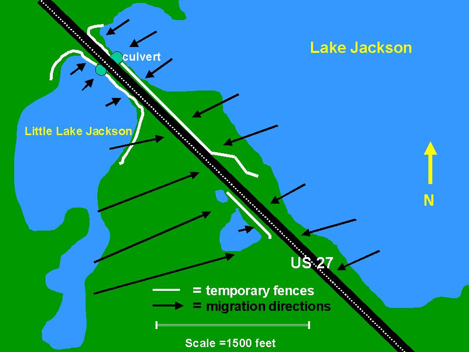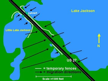 Lake Jackson Ecopassage map showing location of temporary fences (19k