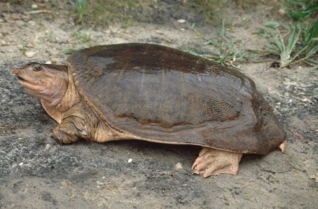 Florida Softshell Turtle climbing temporary fence #1 (102k