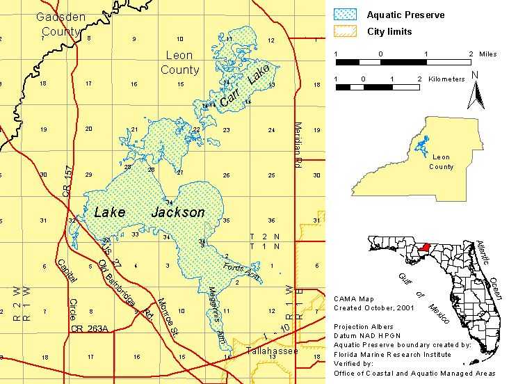Lake Jackson Aquatic Preserve map - showing ecopassage location (91k)