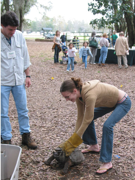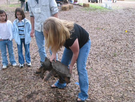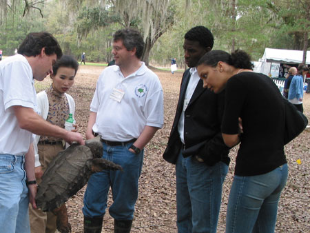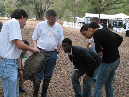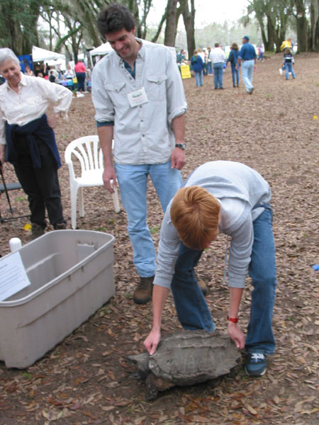 Colin and Jeff Phipps visiting with Matt Aresco and the alligator snapping turtle